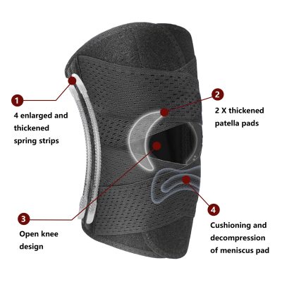 Built-in spring side stabilizers provide enhanced lateral support to help control unwanted knee movement while allowing natural flexibility. The lightweight mesh fabric promotes airflow and moisture control, keeping your knee cool, dry, and comfortable even during extended wear.