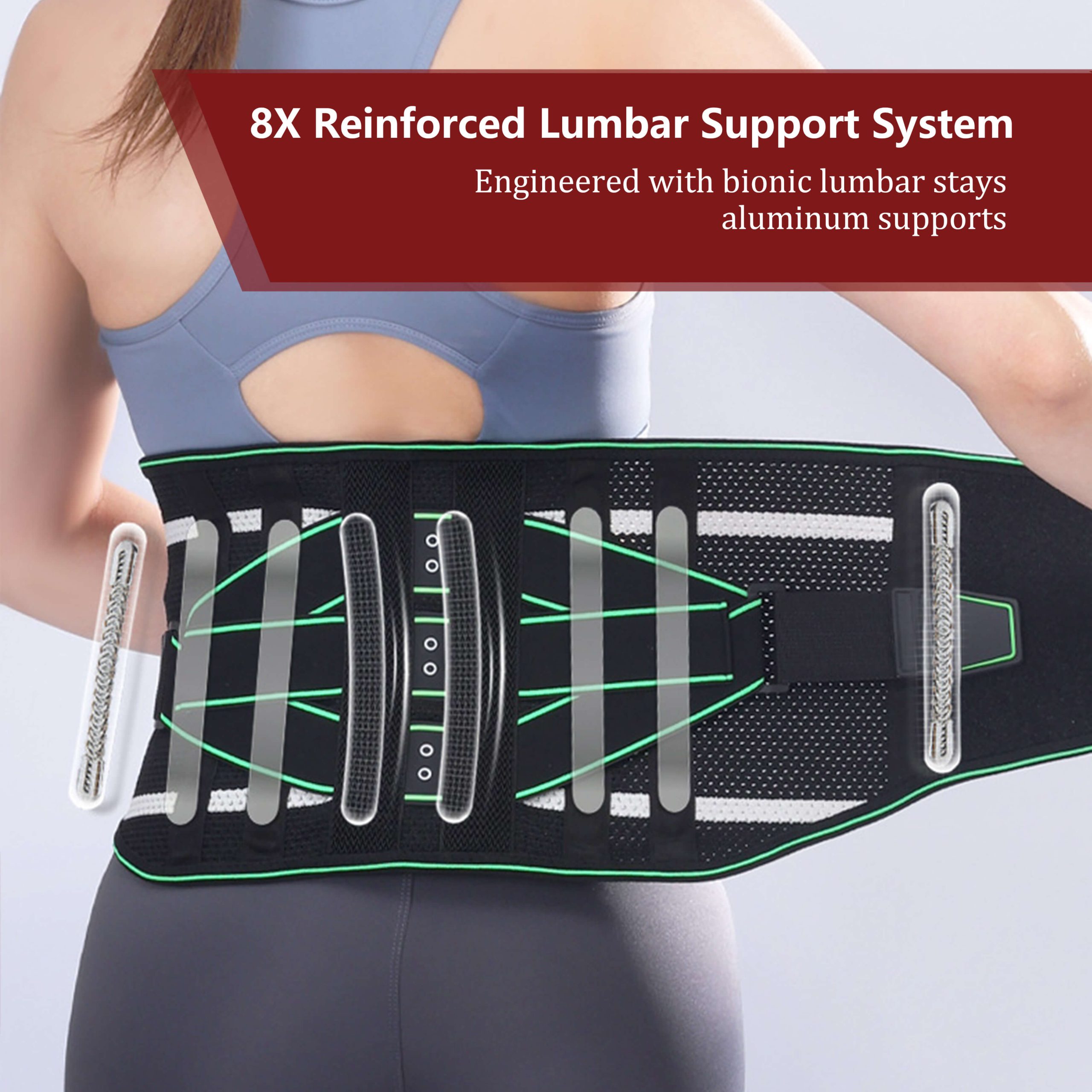Advanced Lumbar Support Back Brace with 8X Stabilization & Adjustable Compression
