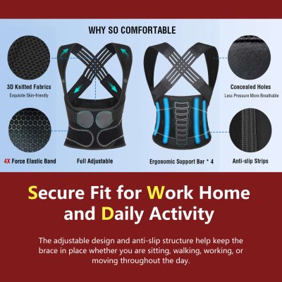 This posture support brace is designed for men and women who want better alignment, stronger back support, and more comfort during daily activities. Whether you spend long hours at a desk, notice rounded shoulders, deal with lower back fatigue, or need extra support for posture correction, this brace is built to help you stay supported throughout the day.