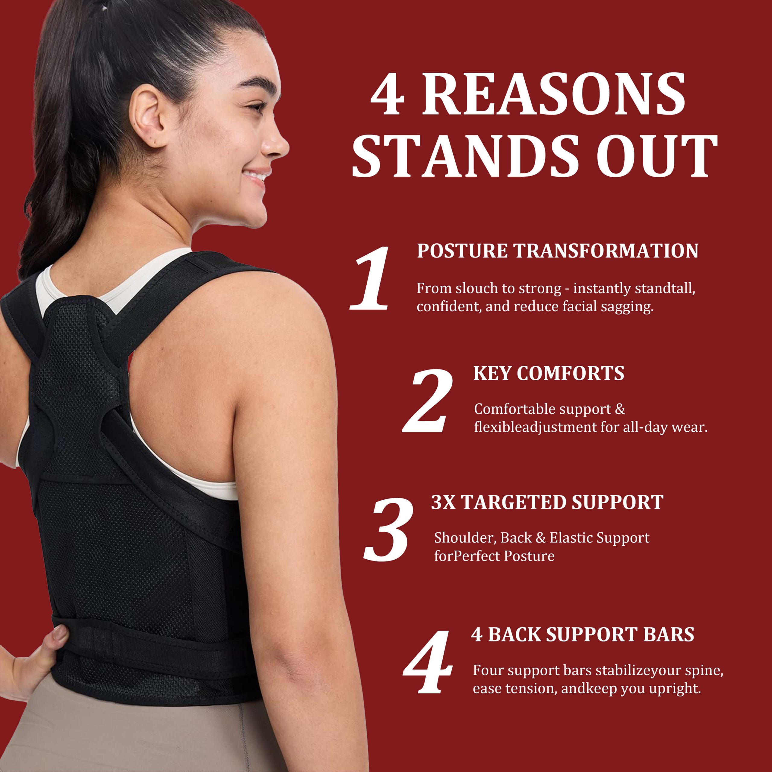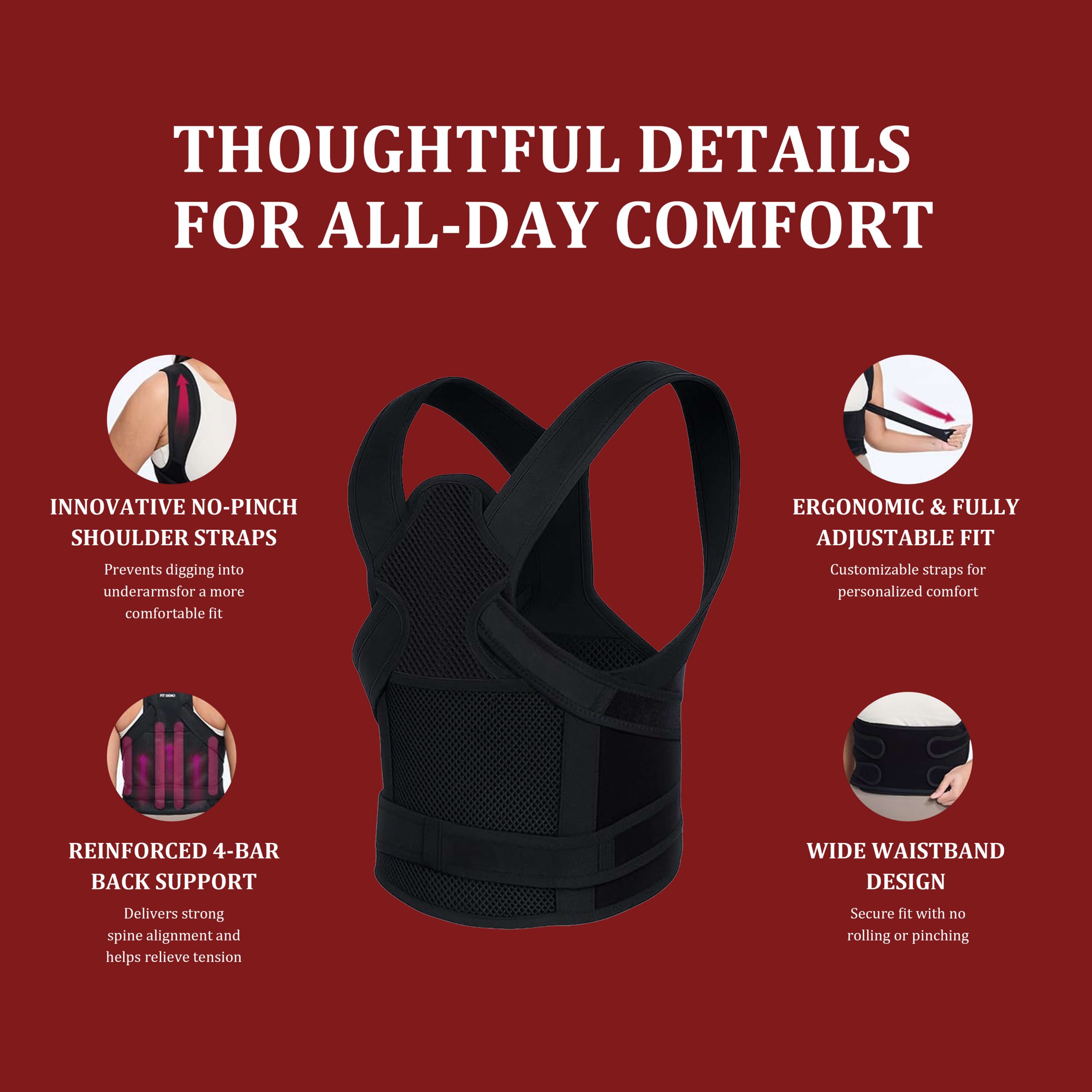 The brace features 4 removable fiberglass support rods that help provide firm, balanced support to the spine and back muscles. This reinforced structure helps reduce slouching, rounded shoulders, and upper-body collapse often caused by desk work, screen time, or poor sitting habits.