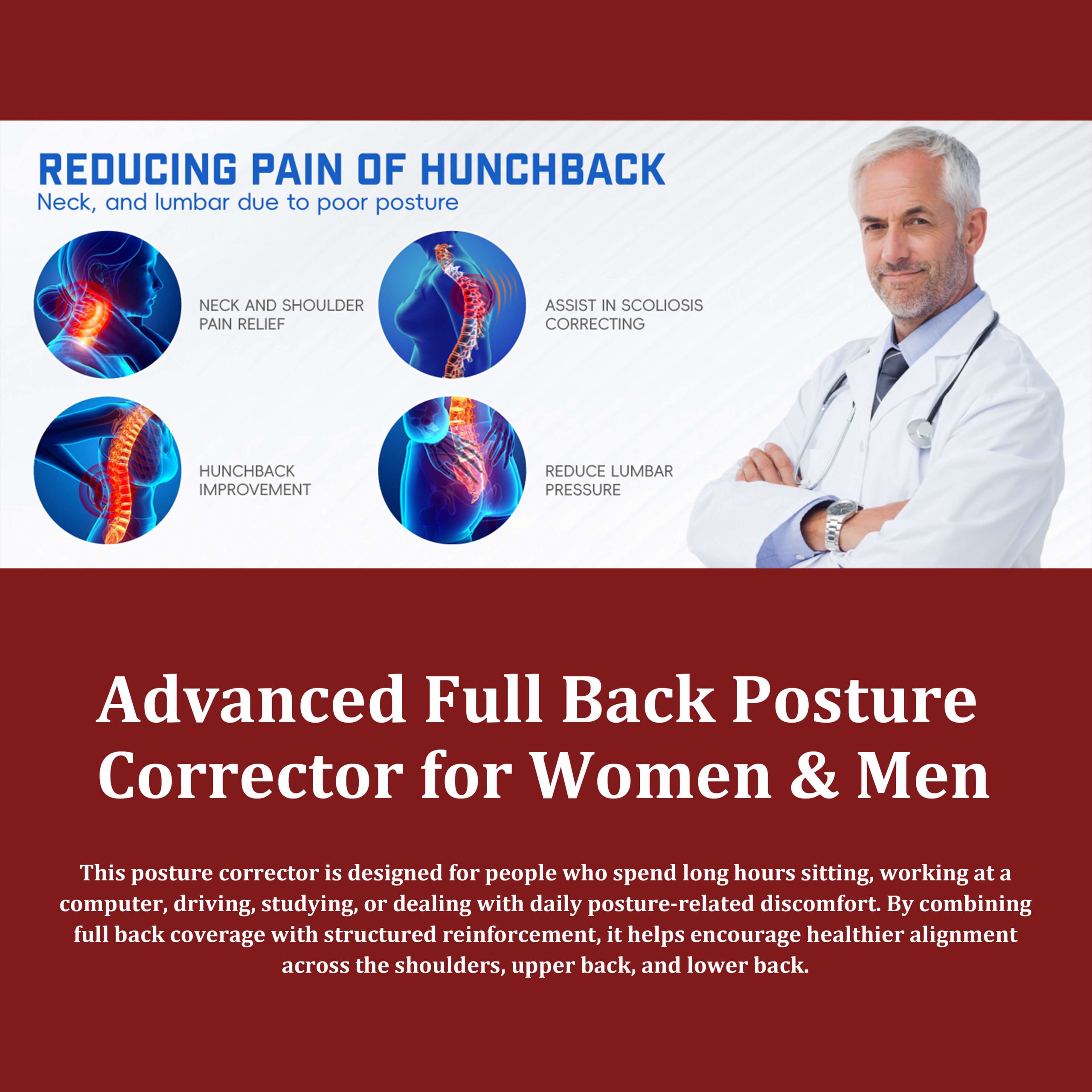 This posture corrector is designed for people who spend long hours sitting, working at a computer, driving, studying, or dealing with daily posture-related discomfort. By combining full back coverage with structured reinforcement, it helps encourage healthier alignment across the shoulders, upper back, and lower back.
