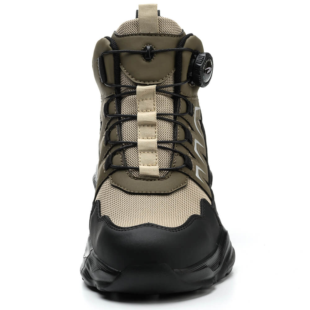 Armin Steel Toe Knob-Lacing Lightweight Work Boots khaki