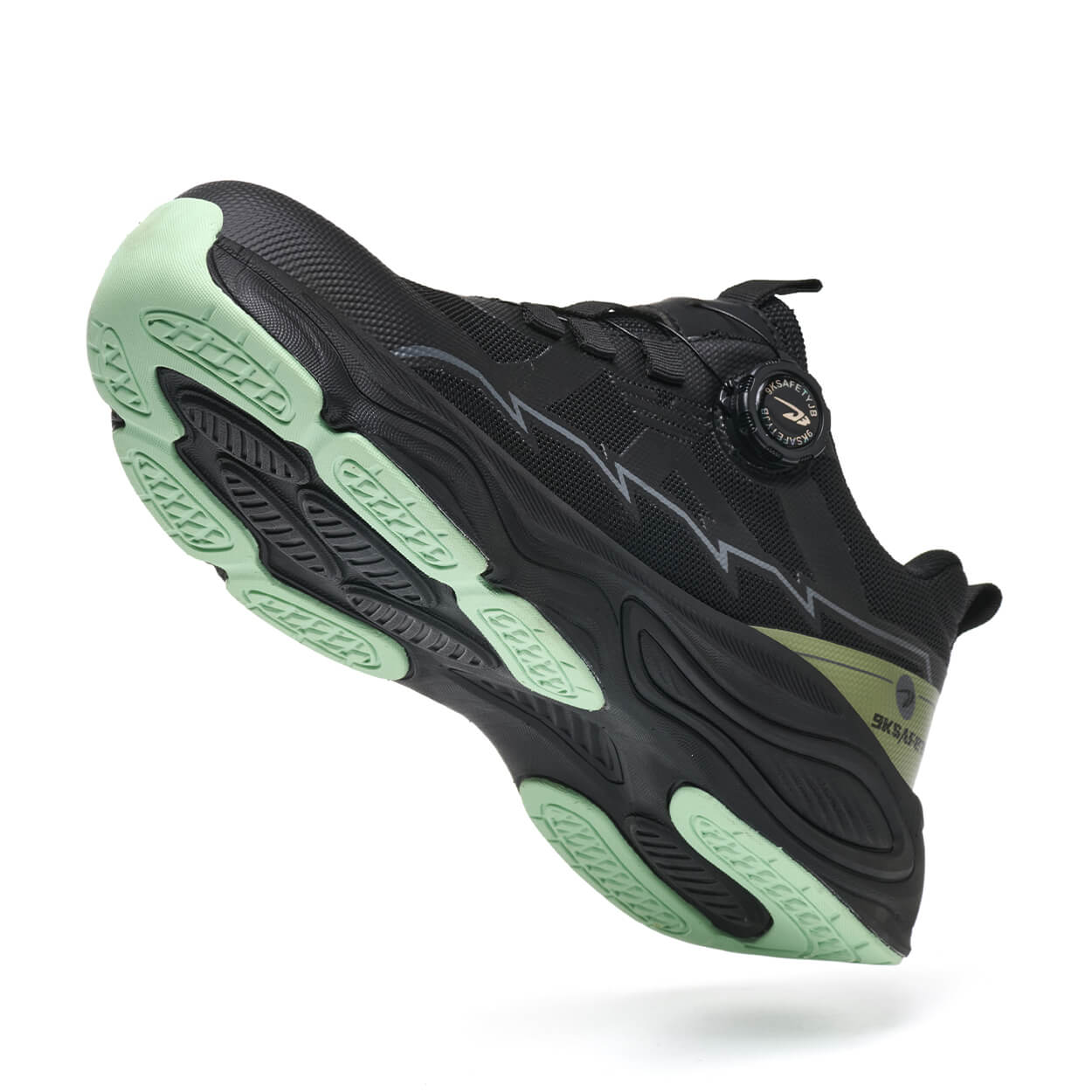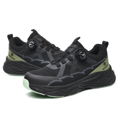 Mick Comfortable Non Slip Steel Toe Shoes Black/Green